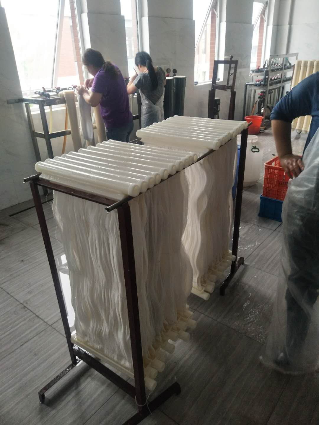 增強復合PVDF膜采用親水改性PVDF原料,膜片具有較好的親水性,現(xiàn)場不必再做親水處理。 但若膜片安裝后不立即投入使用,或者在使用過程中,需要停放一段時間,請保證膜片浸沒于水中,或者始終保持濕潤狀態(tài)。